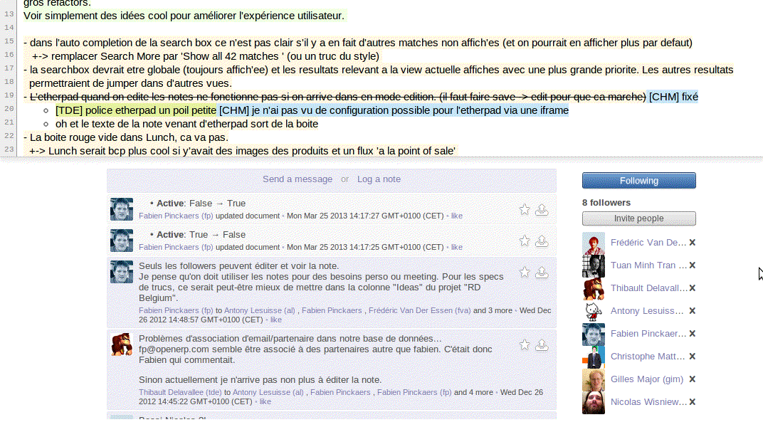 Benutzen Sie die Odoo Anwendung Open Chatter, um mit Ihrem Team oder mit Kunden zu kommunizieren. Teilen Sie Kommentare und Dokumente zu Aufgaben und Problemen. Mit Hilfe der E-Mail Integration können Sie Diskussionen ebenso schnell mit anderen Usern teilen.