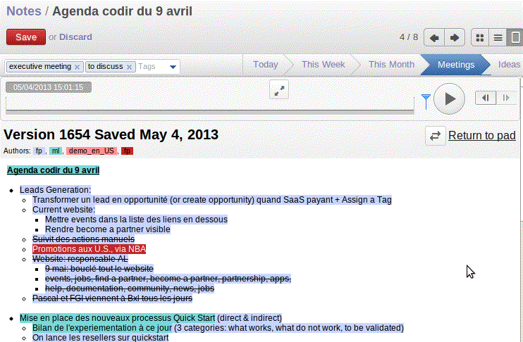 Arbeiten Sie zeitgleich an derselben Notiz oder den gleichen Protokollen. Das eingebundene Etherpad-Feature erlaubt das Arbeiten mehrerer Benutzer zur gleichen Zeit an der gleichen Aufgabe.